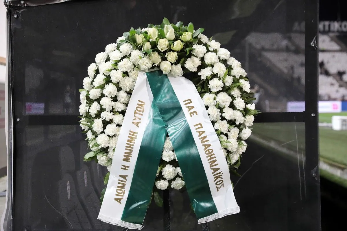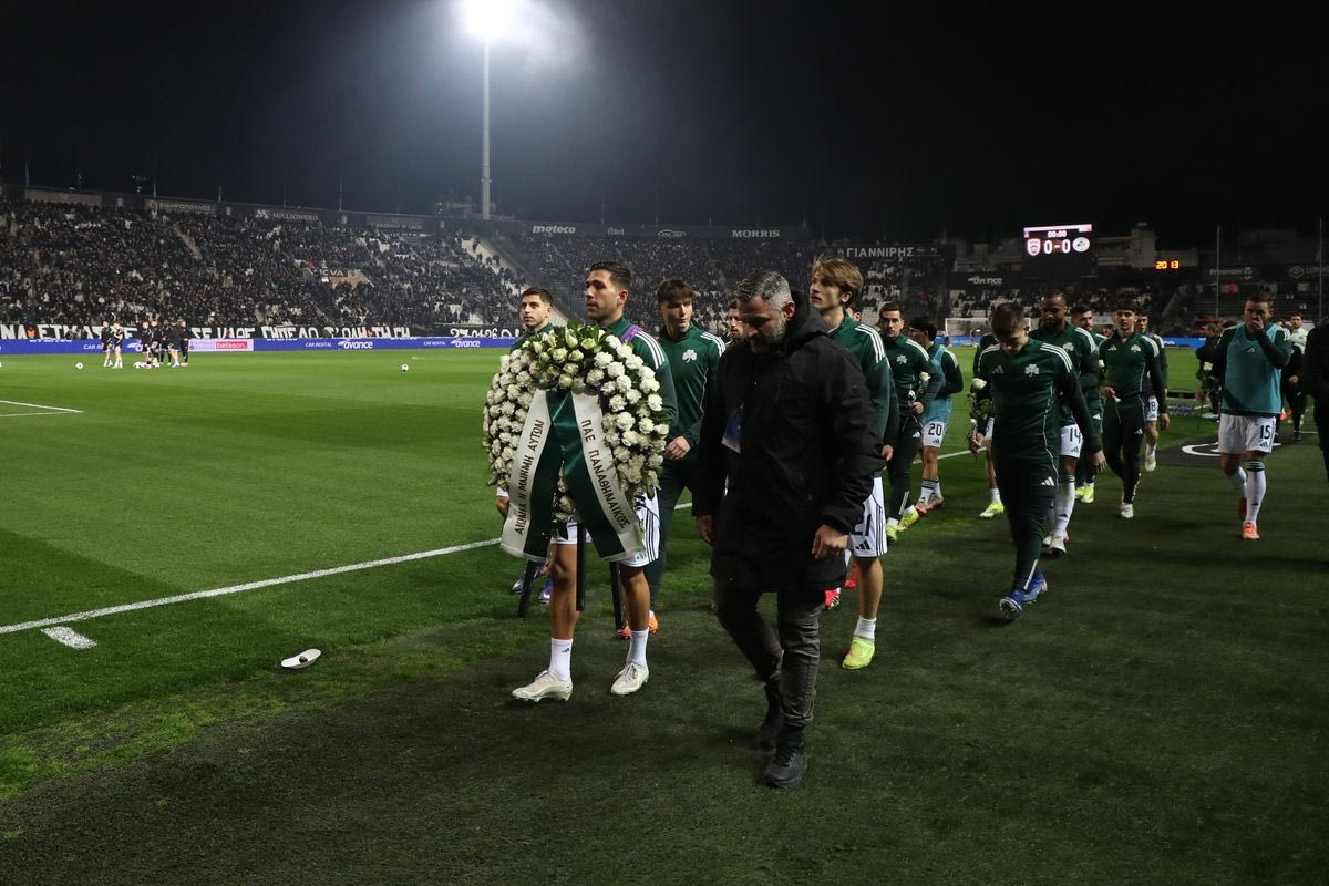 Πριν από την έναρξη του αγώνα, οι παίκτες των πράσινων κατέθεσαν στεφάνι και λευκά τριαντάφυλλα στη Θύρα 4 στη μνήμη των αδικοχαμένων φίλων του Δικεφάλου, που έχασαν τη ζωή τους στο πολύνεκρο τροχαίο στη Ρουμανία.