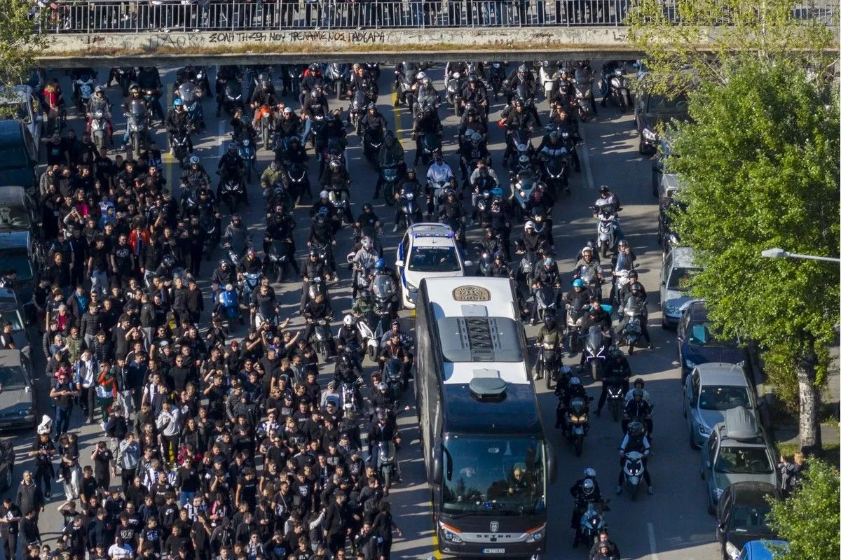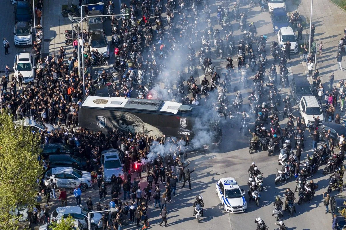 Οι φίλοι του ΠΑΟΚ δημιούργησαν εντυπωσιακή ατμόσφαιρα έξω από το Μακεδονία Palace πριν τη αναχώρηση της αποστολής για το ματς με τον Παναθηναϊκό. Χιλιάδες κόσμος μαζεύτηκε για να αποθεώσει τους παίκτες του Ραζβάν Λουτσέσκου και να συνοδεύσει την αποστολή προς την Τούμπα.