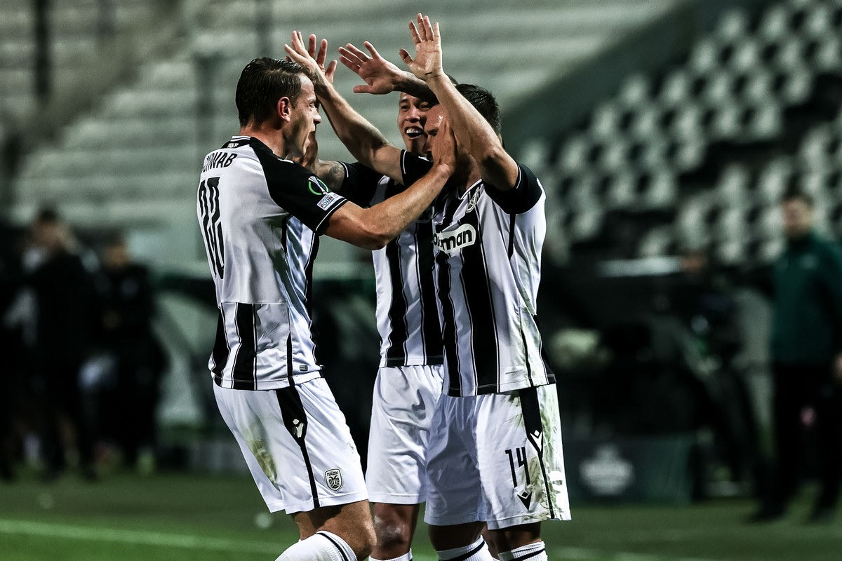 Οι παίκτες του ΠΑΟΚ πανηγυρίζουν το γκολ επί της Λίνκολν | 9 Δεκεμβρίου 2021