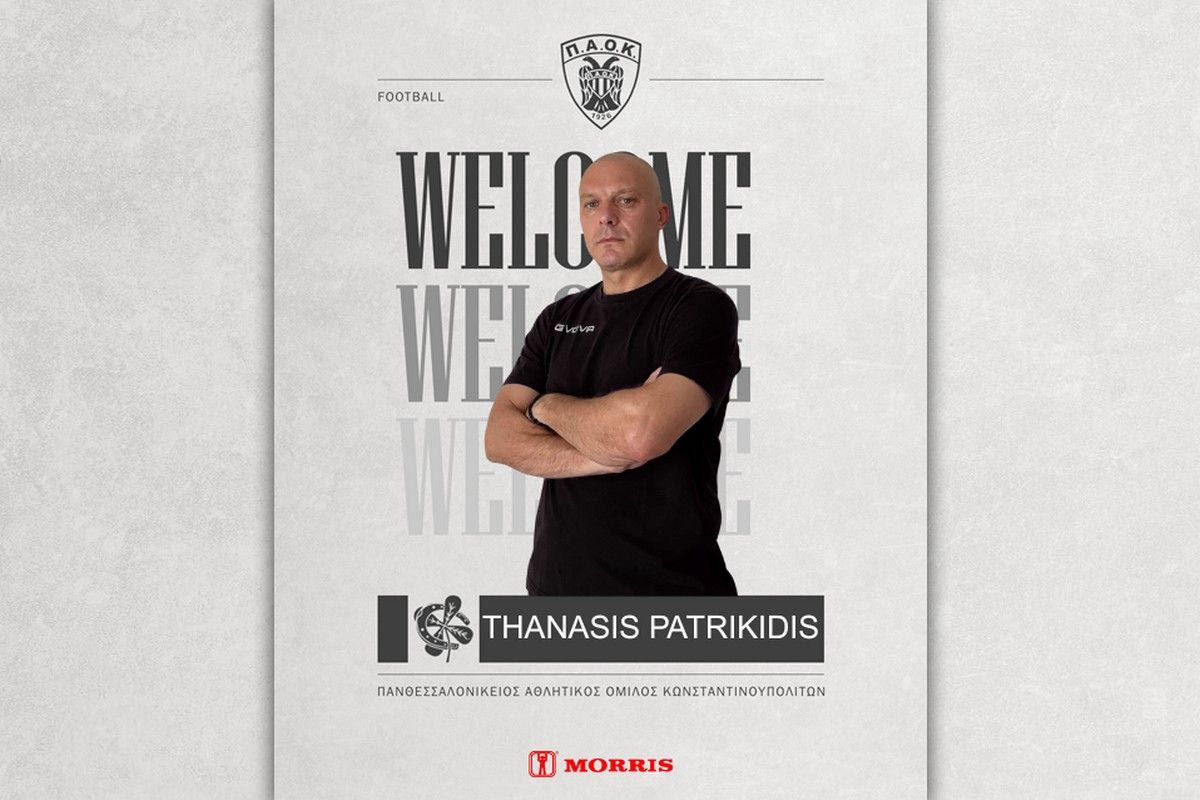 Ο ΠΑΟΚ ανακοίνωσε την πρόσληψη του Θανάση Πατρικίδη, ο οποίος αναλαμβάνει χρέη προπονητή στην ομάδα ποδοσφαίρου γυναικών.