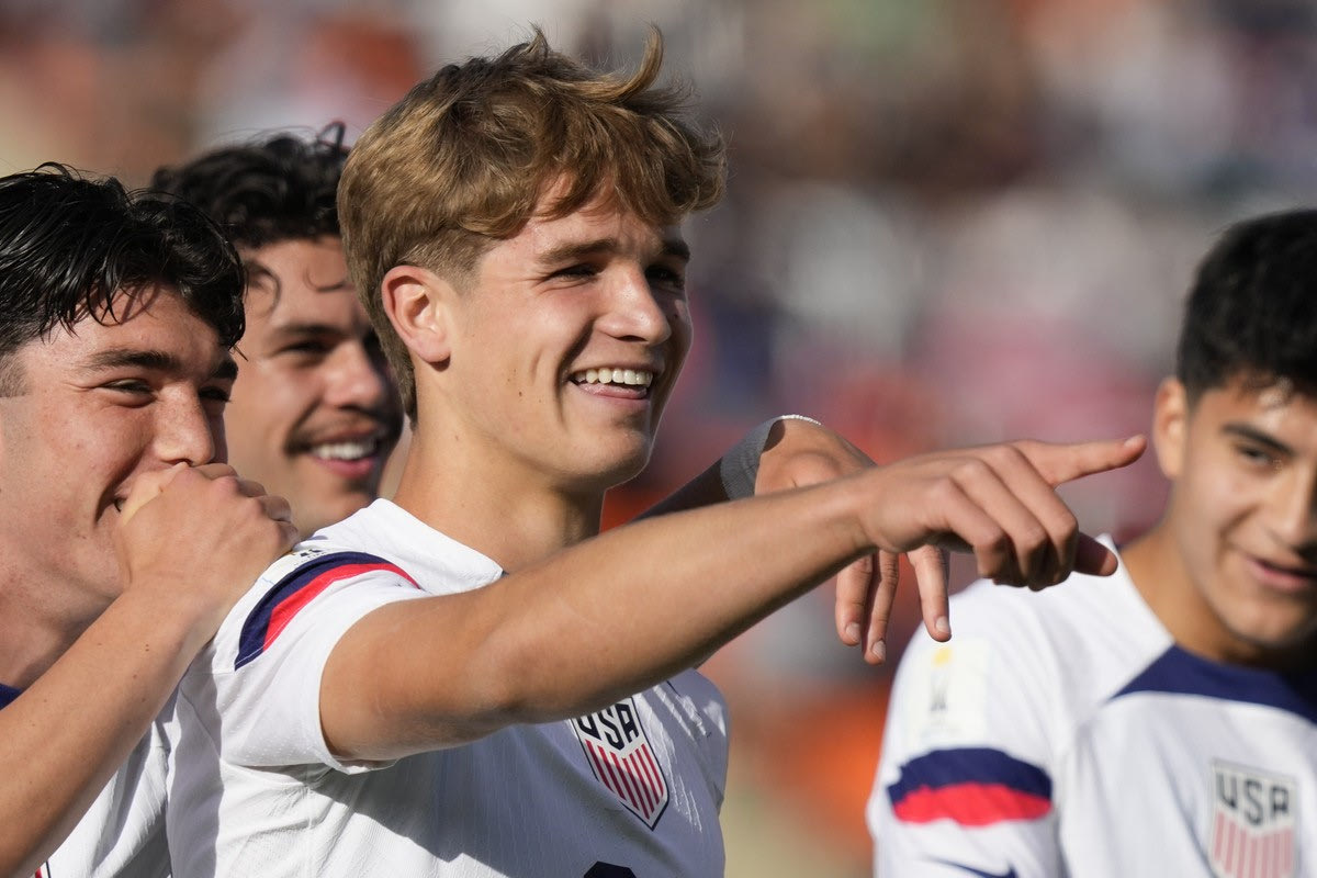 Ο Ρόκας Πούκστας των ΗΠΑ πανηγυρίζει γκολ που σημείωσε κόντρα στη Νέα Ζηλανδία για τη φάση των 16 του Παγκοσμίου Κυπέλλου Κ20 στο "Μαλβίνας Αρχεντίνας", Μεντόσα | Τρίτη 30 Μαΐου 2023
