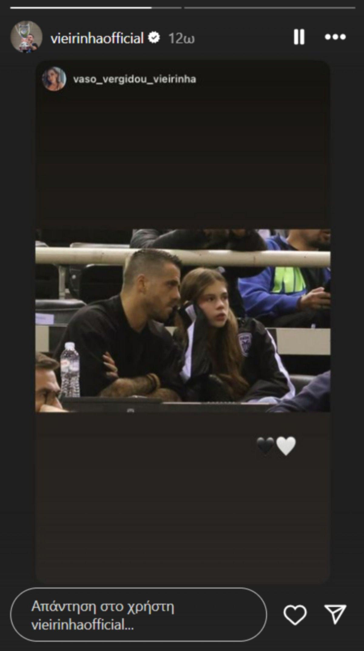 Ο Αντρέ Βιεϊρίνια βρέθηκε στο Παλατάκι, το βράδυ της Τετάρτης (23/10), μαζί με την κόρη του και πανηγύρισε τη νίκη του δικέφαλου επί της Σόλνοκι.