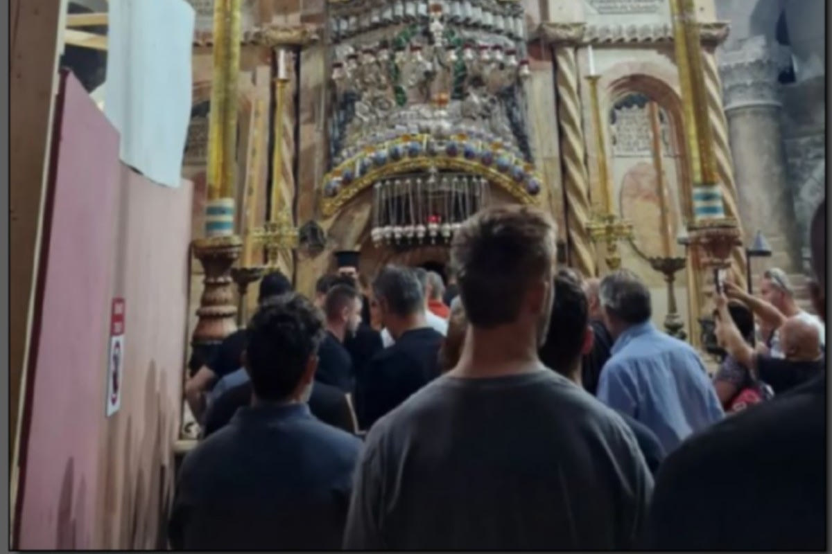 Το πρωί της Τετάρτης, μέλη της αποστολής, επισκέφτηκαν τον Ναό του Παναγίου Τάφου που βρίσκεται στη χριστιανική συνοικία της παλαιάς πόλης της Ιερουσαλήμ.