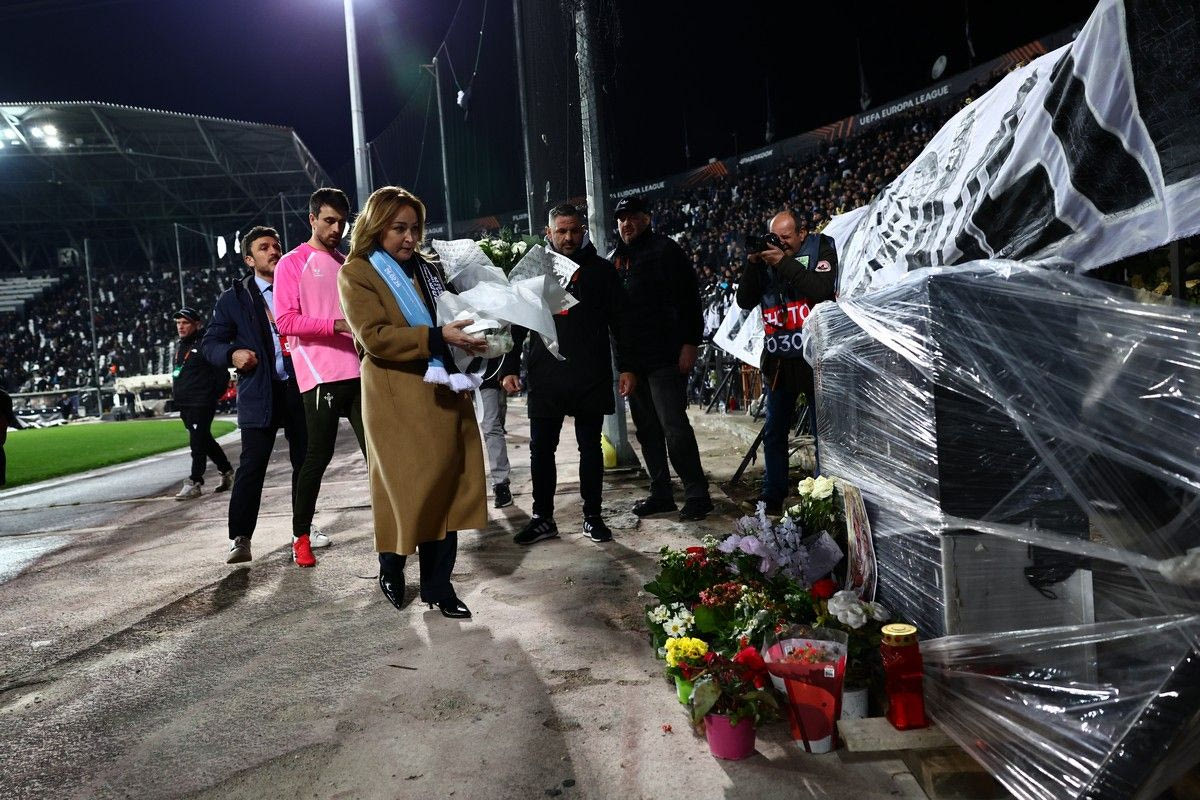 ΠΑΟΚ – Θέλτα: Η πρόεδρος των Ισπανών άφησε λουλούδια για τους αδικοχαμένους φιλάθλους του Δικεφάλου