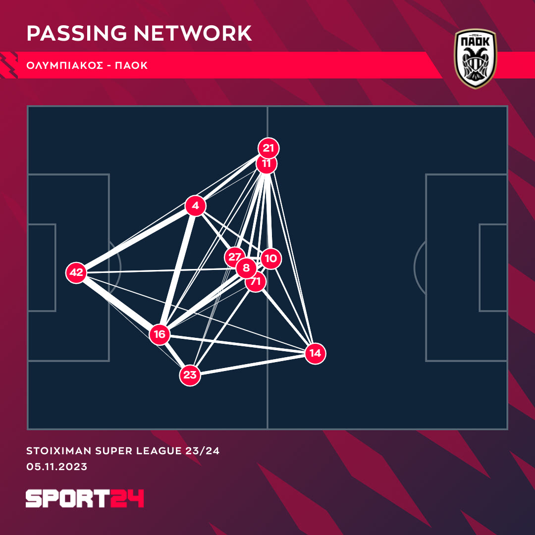 Πώς το έκανε; Πρώτη ματιά, η διάταξη και η ξεκάθαρη στόχευση. Αυτός ήταν ο χώρος δράσης και οι μεταβιβάσεις των παικτών του ΠΑΟΚ στα πρώτα 45′.
