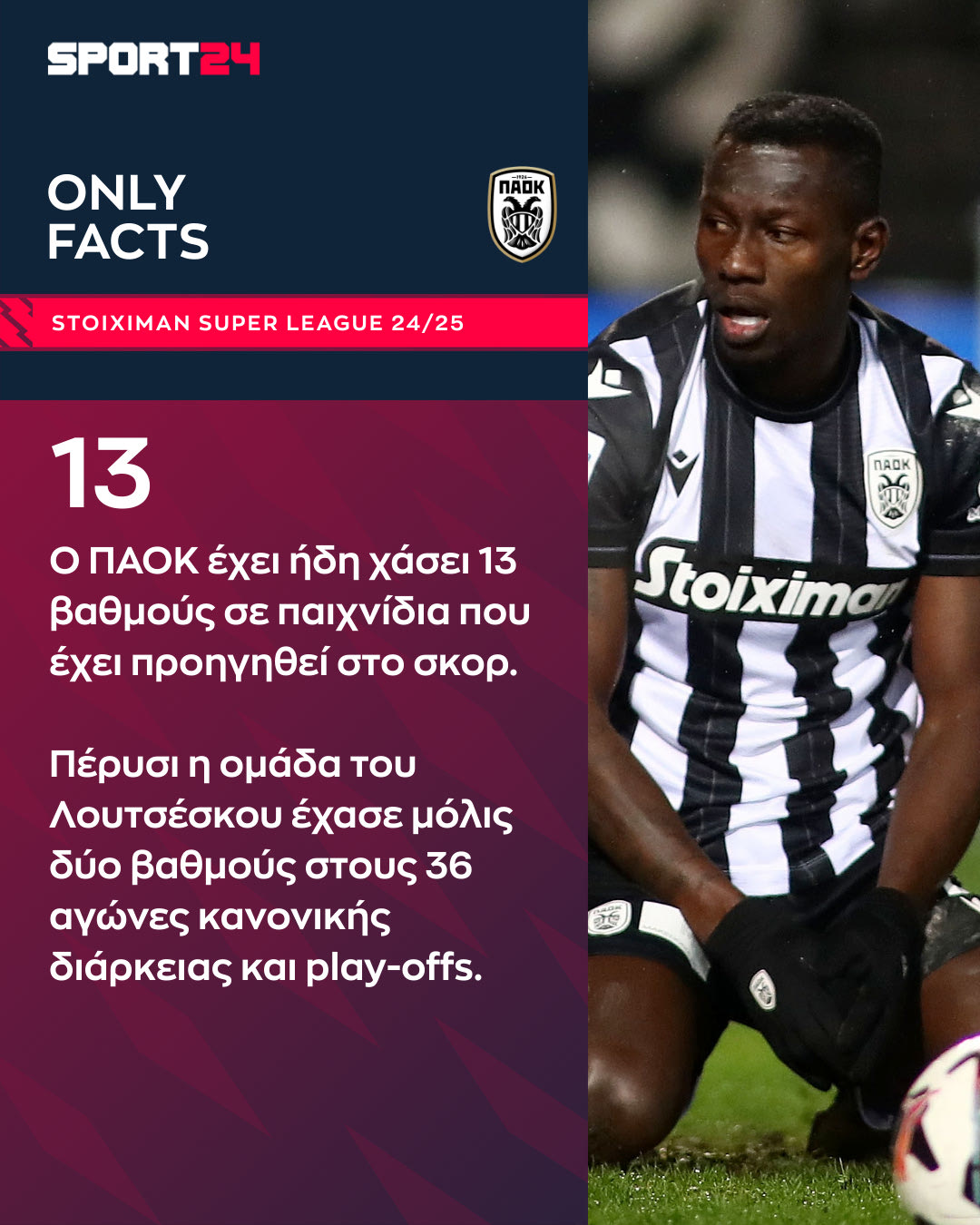 Είναι επίσης πολύ σημαντικό το γεγονός ότι μέχρι τώρα στη σεζόν ο Δικέφαλος έχει χάσει 13 βαθμούς σε παιχνίδια που βρέθηκε μπροστά στο σκορ. Προηγήθηκε στην OPAP Arena και στο τέλος αναδείχθηκε ισόπαλος με την ΑΕΚ, άνοιξε το σκορ στον εντός έδρας αγώνα με τον ΟΦΗ αλλά δέχθηκε δυο γκολ σε λίγα λεπτά και έχασε το παιχνίδι με τους Κρητικούς.