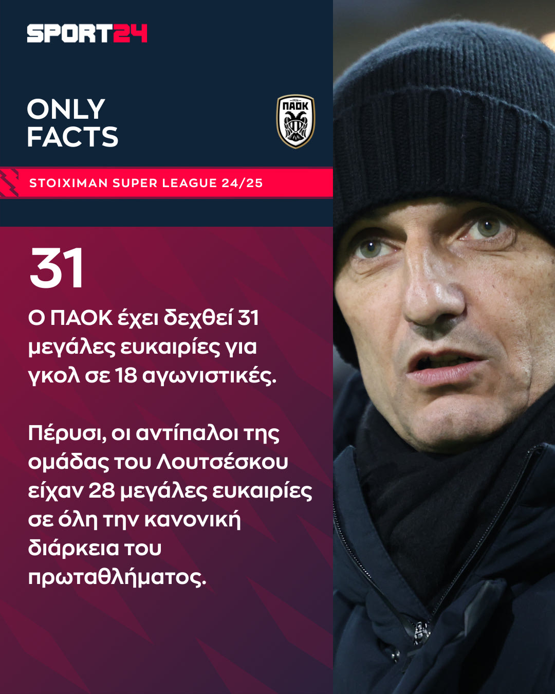 Η μεγαλύτερη πληγή για τον φετινό ΠΑΟΚ είναι οι μεγάλες ευκαιρίες που επιτρέπει στους αντιπάλους του. Στα 18 μέχρι τώρα παιχνίδια της κανονικής διάρκειας του πρωταθλήματος η ομάδα του Ραζβάν Λουτσέσκου έχει δεχθεί ήδη 31 μεγάλες ευκαιρίες.
