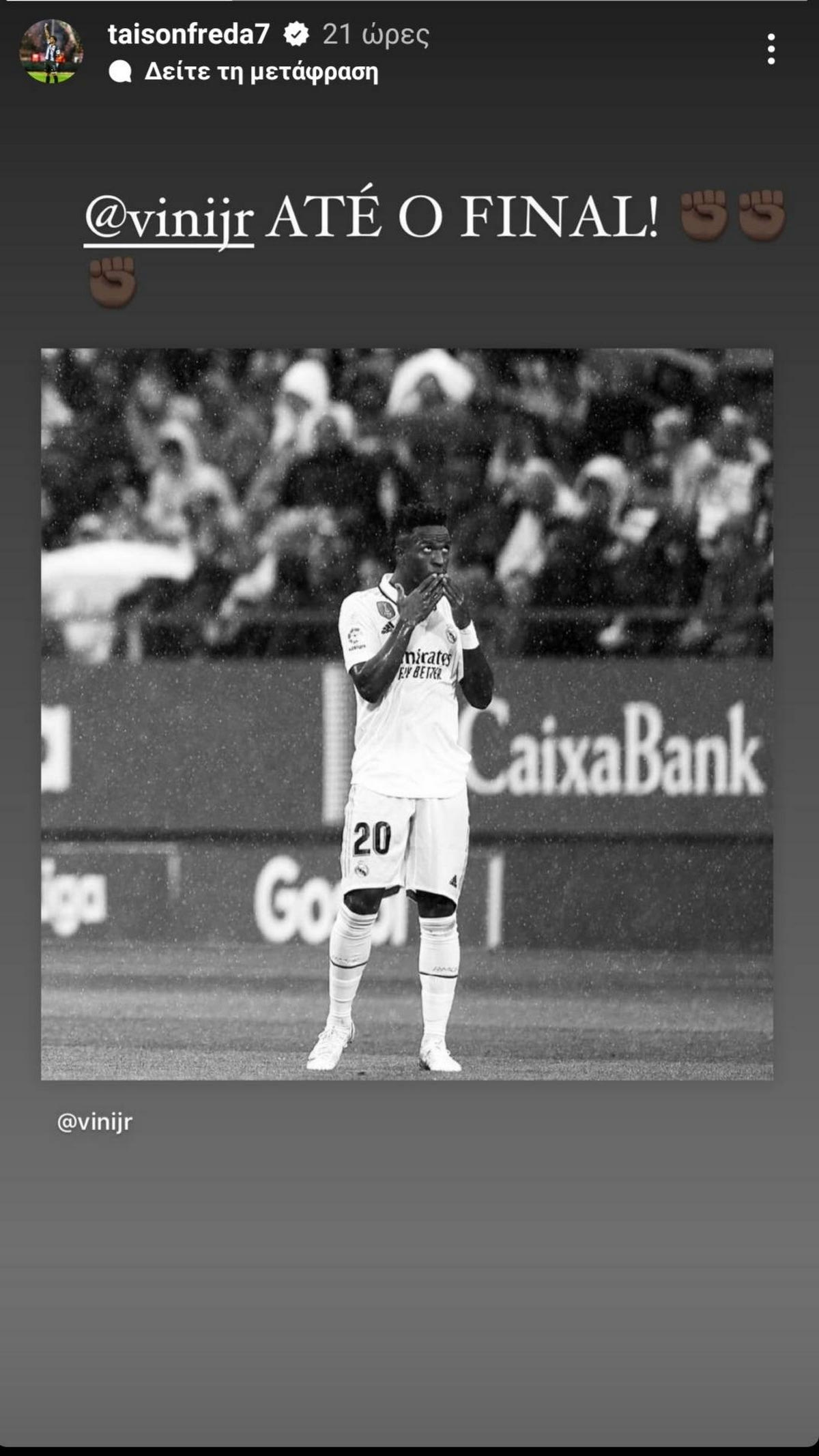 Γενικότερα πάντως πολλοί Βραζιλιάνοι και όχι μόνο ποδοσφαιριστές τάσσονται στο πλευρό του Βινίσιους και ένας από αυτούς είναι και ο πρώην ακραίος αμυντικός του ΠΑΟΚ, Λίνο Άλβες.