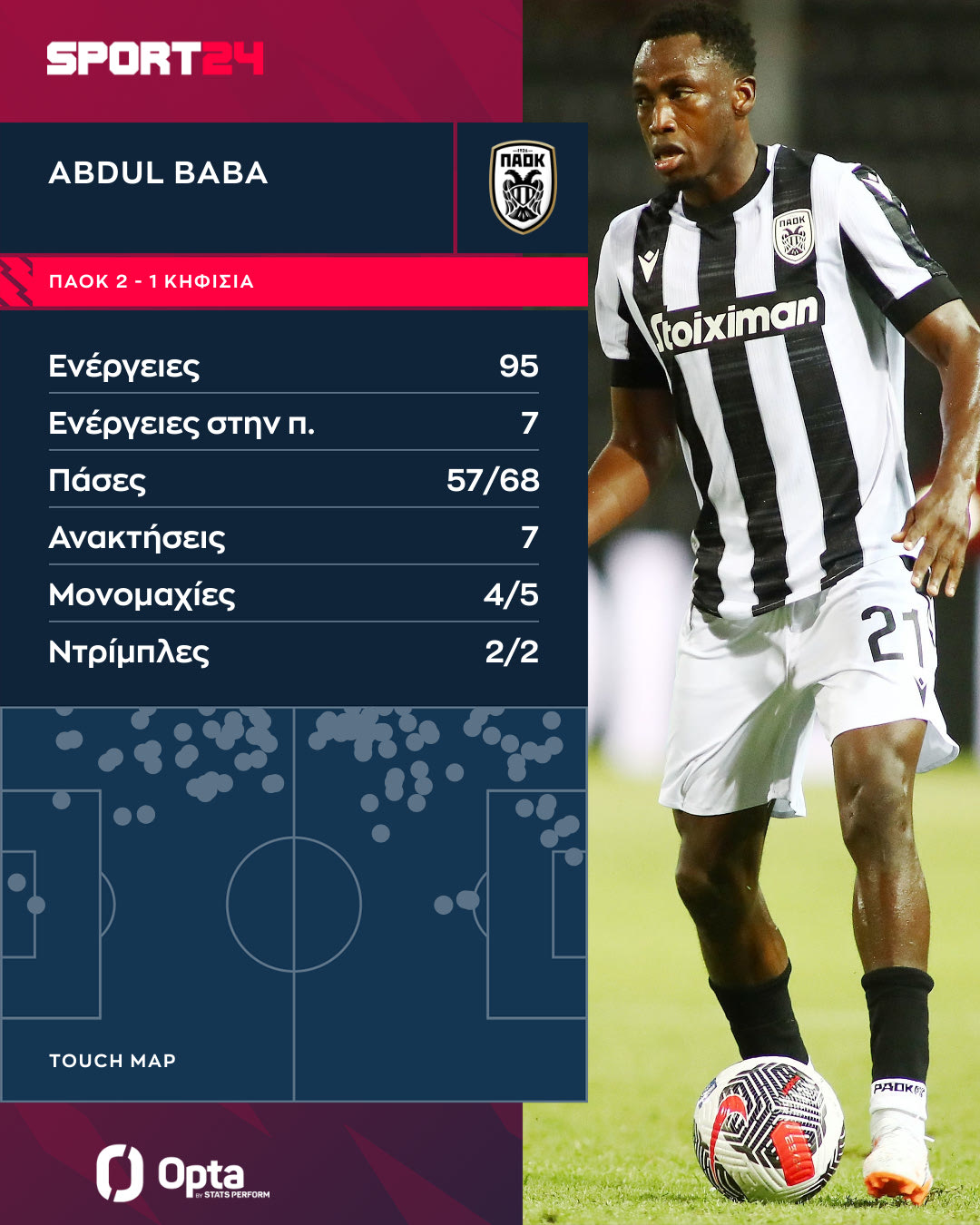 Ο Μπάμπα ήταν ο ποδοσφαιριστής με τις περισσότερες ενέργειες του ΠΑΟΚ κόντρα στην Κηφισιά, έχοντας συνολικά, 95. Το πιο αξιοσημείωτο όμως ήταν ότι ο Γκανέζος ήταν ο ποδοσφαιριστής με τις περισσότερες ενέργειες στην αντίπαλη περιοχή (7), παρότι ήταν ο αριστερός μπακ του Δικεφάλου.