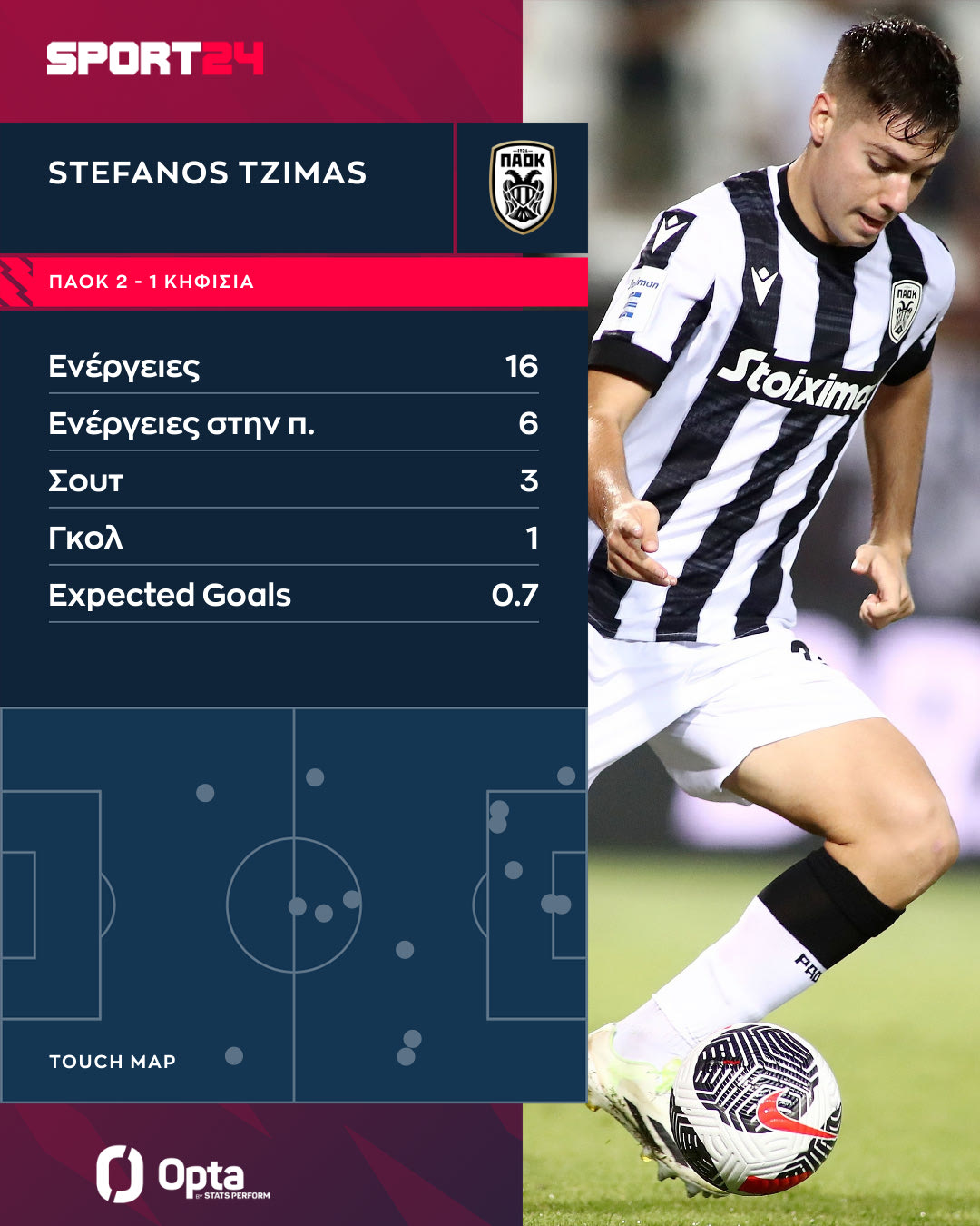 Δείτε το γράφημα της Opta Stats / Perform με τις ενέργειες του Στέφανου Τζίμα κόντρα στην Κηφισιά.
