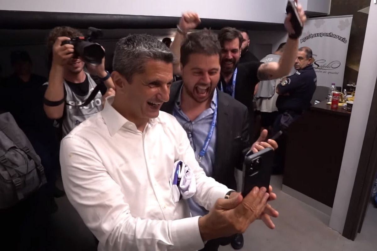 Στην παρακάμερα που δημοσίευσε ο Δικέφαλος στα social media ξεχωρίζει το ατελείωτο πάρτι στα αποδυτήρια στο Χαριλάου, με τους παίκτες να τραγουδούν “Campeones Campeones”, αλλά και η βιντεοκλήση του Ραζβάν Λουτσέσκου με τον Ιβάν Σαββίδη.