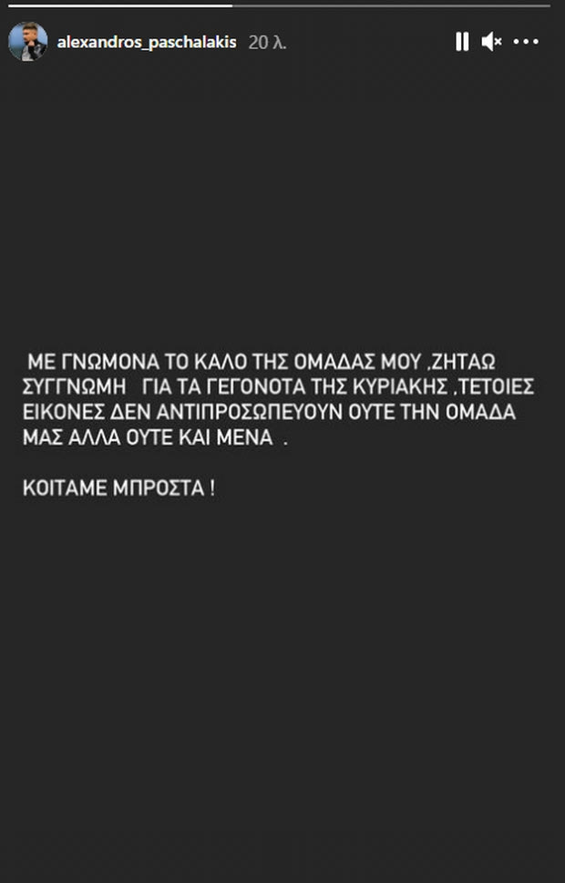 “Με γνώμονα το καλό της ομάδας μου, ζητάω συγγνώμη για τα γεγονότα της Κυριακής. Τέτοιες εικόνες δεν αντιπροσωπεύουν ούτε την ομάδα μας αλλά ούτε και μένα.