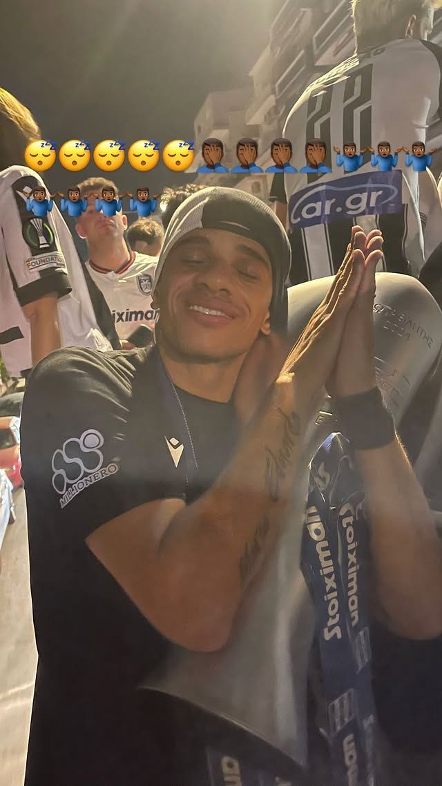 Οι δυο ποδοσφαιριστές του Δικεφάλου ανέβασαν stories στο instragram, αγκαλιά με το τρόπαιο του πρωταθλητή και χαρακτηριστικά emojis απορίας και αντίδρασης.