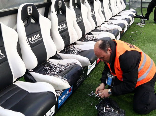 Ο 36χρονος οπαδός του ΠΑΟΚ που πέταξε τα ψάρια στον πάγκο του Ολυμπιακού, αντιμετωπίζει την κατηγορία της “παράνομης εισόδου στον αγωνιστικό χώρο με σκοπό την πρόκληση επεισοδίων”.