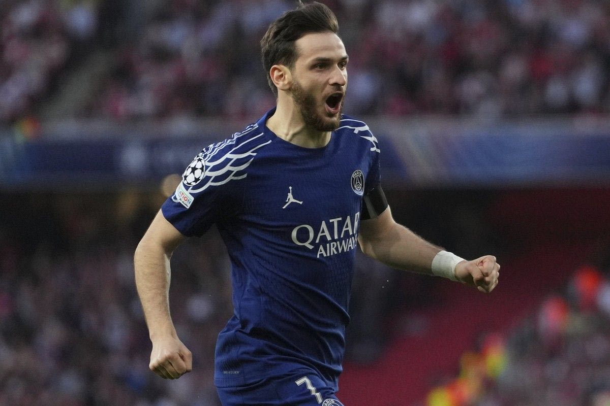 Η ενδεκάδα της Παρί Σεν Ζερμέν: Ντοναρούμα, Χακίμι, Μαρκίνιος, Πάτσο, Μέντες, Νέβες, Βιτίνια, Ρουίθ, Ντουέ, Ντεμπελέ, Κβαρατσχέλια