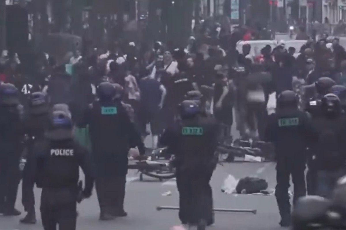 Σε VIDEO που δημοσίευσε η Marca φαίνονται οι άγριες συμπλοκές μεταξύ Γάλλων και Ιταλών κατά τη διάρκεια του πρώτου ημιχρόνου του μεγάλου αγώνα, με την αστυνομία να επεμβαίνει και να προχωρά στις πρώτες προσαγωγές.