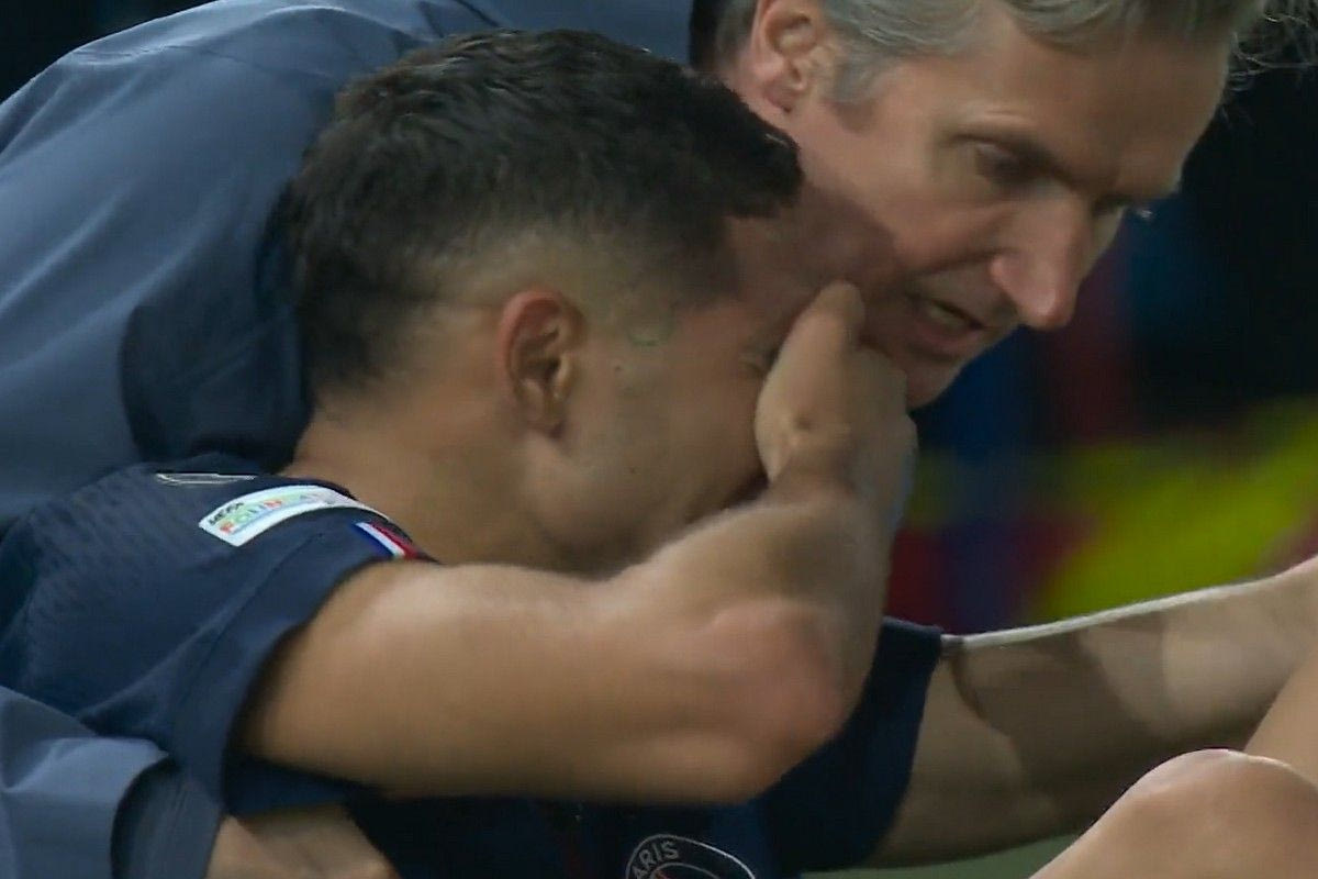 Ο Ασράφ Χακίμι αποχώρησε από το γήπεδο της Παρί Σεν Ζερμέν, πάνω σε πατερίτσες και φορώντας προστατευτική μπότα, έπειτα από το πολύ σκληρό μαρκάρισμα του Λουίς Ντίας στις καθυστερήσεις του πρώτου μέρους.