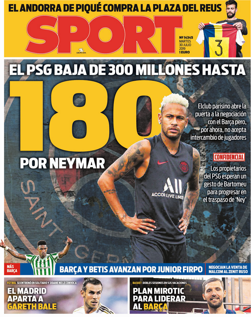 Φαίνεται όμως πως αυτή η τακτική πιάνει, αν ισχύει το ρεπορτάζ της καταλανικής “Sport”, σύμφωνα με το οποίο η Παρί έπεσε στα 180 εκατ. ευρώ για να πουλήσει τον ποδοσφαιριστή, χωρίς να ζητά έμψυχα ανταλλάγματα.