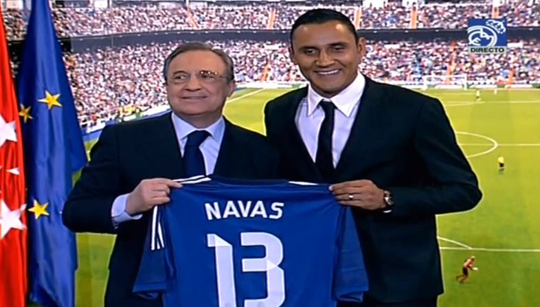 Δύο ημέρες μετά την ανακοίνωση της μεταγραφής του από τη Λεβάντε (εξαετές συμβόλαιο), ο Κέιλορ Νάβας πέρασε με επιτυχία τις ιατρικές εξετάσεις και στη συνέχεια παρουσιάστηκε επίσημα σε αίθουσα του “Σαντιάγο Μπερναμπέου” από τον Φλορεντίνο Πέρεθ.