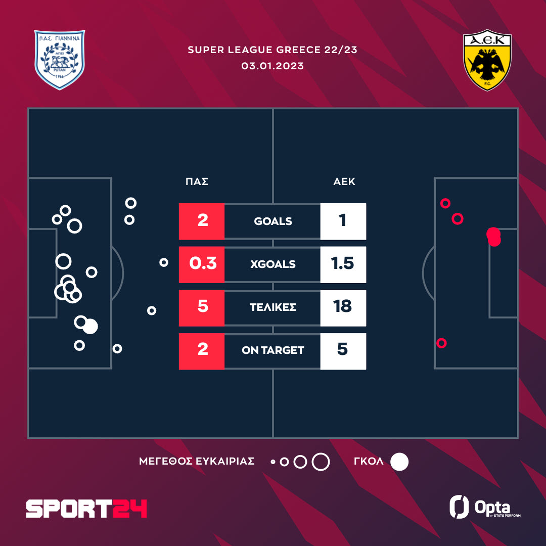 ΠΑΣ Γιάννινα – ΑΕΚ 2-1: Οι εντυπωσιακοί Ηπειρώτες σταμάτησαν το νικηφόρο σερί της Ένωσης