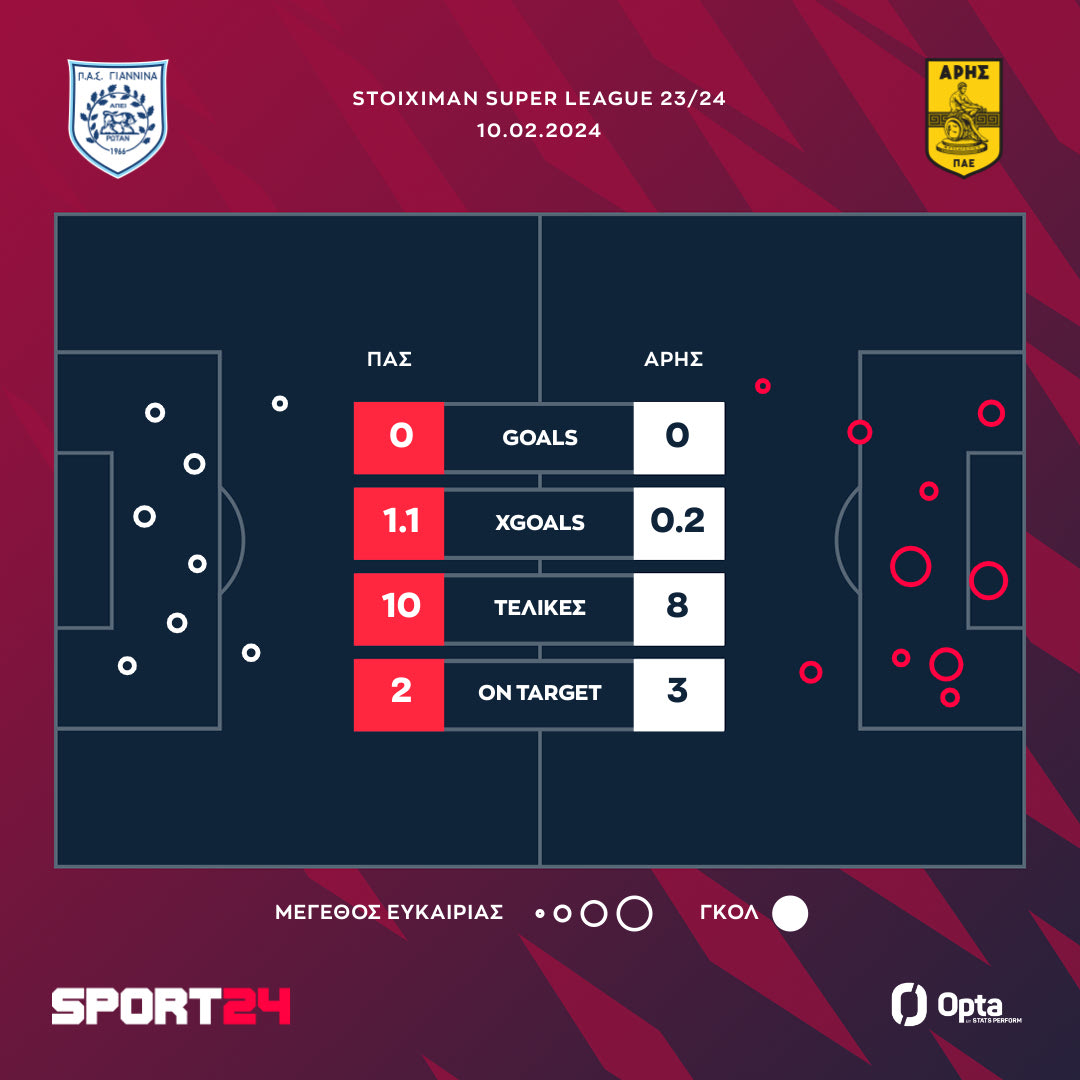 Οι τελικές και τα Expected Goals στο ΠΑΣ Γιάννινα - Άρης