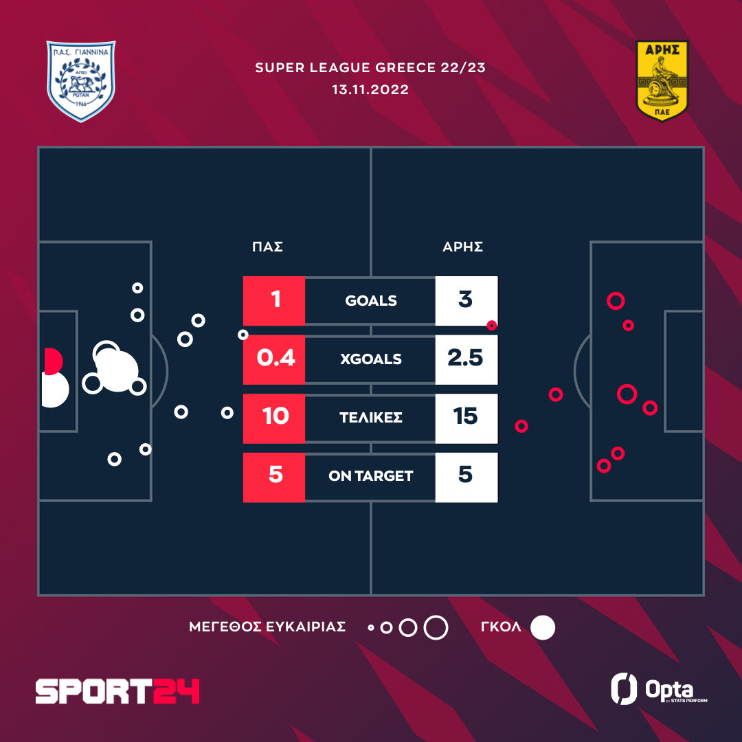 ΠΑΣ Γιάννινα – Άρης 0-4: Διαστημικοί οι κίτρινοι στους Ζωσιμάδες