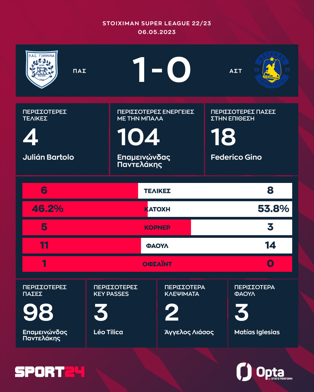 Οι κορυφαίες επιδόσεις και τα στατιστικά στο ΠΑΣ Γιάννινα - Αστέρας