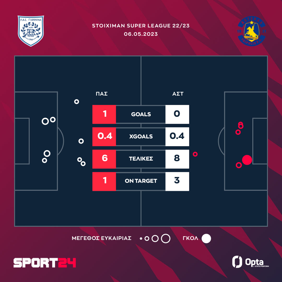 Οι τελικές και τα xgoals στο ΠΑΣ Γιάννινα - Αστέρας