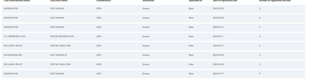Τα προβλήματα συνεχίζονται στον ΠΑΣ Γιάννινα, καθώς η FIFA επέβαλε ένα ακόμη ban στους Ηπειρώτες για οφειλή. Αν δεν πληρωθεί αυτό (μαζί με τα προηγούμενα τρία) η ομάδα των Ιωαννίνων δεν θα μπορεί να κάνει μεταγραφές στις τρεις επόμενες περιόδους.