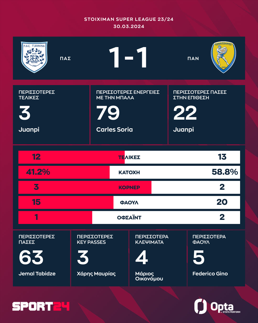 Με αυτό τον βαθμό ο ΠΑΣ Γιάννινα είναι στους 19 και τελευταίος και πάνω από τη ζώνη του υποβιβασμού είναι ο Παναιτωλικός που είναι στους 24 και το +2 από την Κηφισιά.