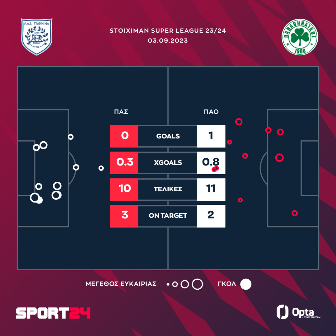 Τα xgoals της αναμέτρησης ανάμεσα στον ΠΑΣ Γιάννινα και τον Παναθηναϊκό OPTA/SPORT24