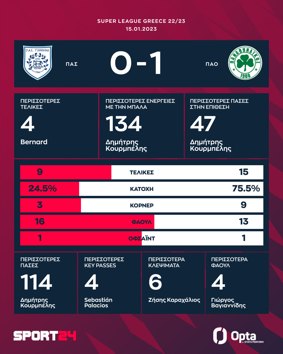 Ένας εξαιρετικός Παναθηναϊκός ο οποίος όμως βρήκε το γκολ στο 90+5′ με τον Σπόραρ να ευστοχεί σε εκτέλεση πέναλτι κέρδισε 1-0 τον ΠΑΣ Γιάννινα εκτός έδρας και πέρασε από τους Ζωσιμάδες όπου είχαν γκελάρει Ολυμπιακός και ΑΕΚ. Το τριφύλλι επέστρεψε έτσι στις νίκες στο πρωτάθλημα μετά την ήττα του από την Ένωση και διατηρήθηκε στο +4 από τους κιτρινόμαυρους.