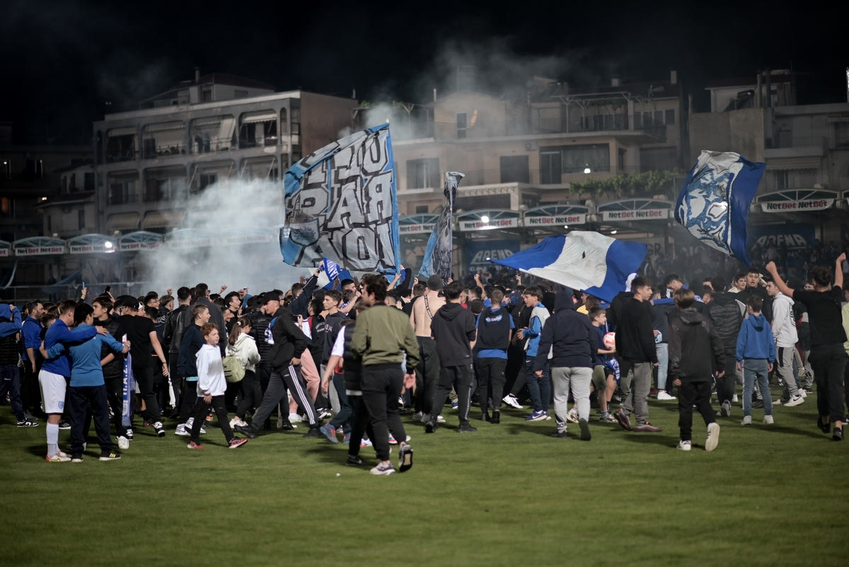 Οι οπαδοί του ΠΑΣ Γιάννινα γιόρτασαν με τους παίκτες της ομάδας τους στον αγωνιστικό χώρο των Ζωσιμάδων μετά το 1-0 επί του Αστέρα.
