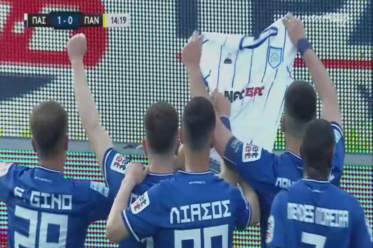 Οι παίκτες του ΠΑΣ Γιάννινα πανηγύρισαν το 1-0 κόντρα στον Παναιτωλικό σηκώνοντας μία φανέλα, η οποία ανέγραφε το όνομα του 30χρονου οπαδού, ο οποίος νοσηλεύεται μετά από άγριο οπαδικό επεισόδιο στα Ιωάννινα.
