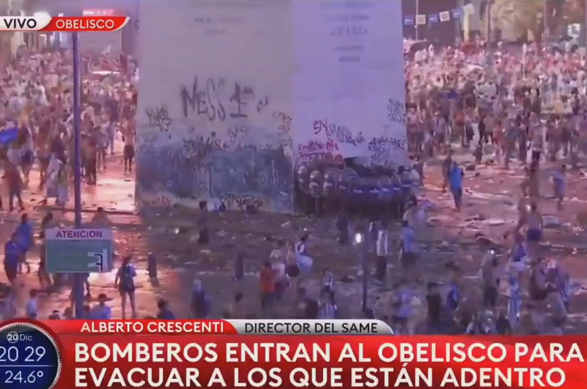Μία διμοιρία παγιδεύτηκε στον Οβελίσκο και δέχθηκε καταιγισμό αντικειμένων, από πέτρες και σίδερα μέχρι ό,τι μπορεί να βάλει ο νους, με αποτέλεσμα να υπάρξει άμεσος κίνδυνος για την σωματική ακεραιότητά της. Οι αστυνομικοί έκαναν χρήση σφαιρών από καουτσούκ για να μην επιτρέψουν στον κόσμο να τους πλησιάσει ακόμη περισσότερο, τα επεισόδια γενικεύθηκαν και σε πολλά σημεία του Μπουένος Άιρες υπάρχει τα ξημερώματα (ώρα Ελλάδας) της Τετάρτης (21/12) αναταραχή χωρίς λόγο, ακόμη και λεηλασία καταστημάτων και ATM τραπεζών.