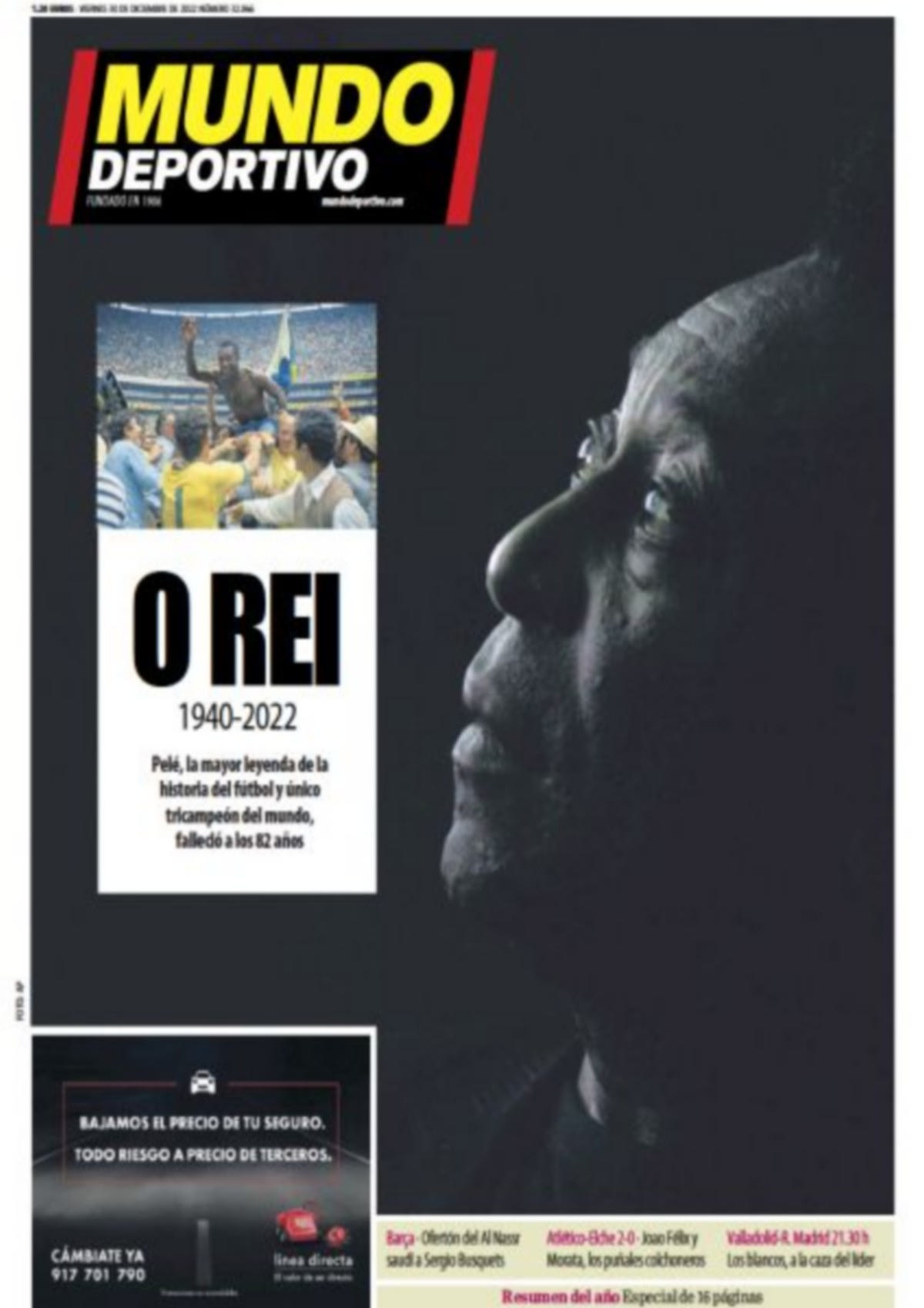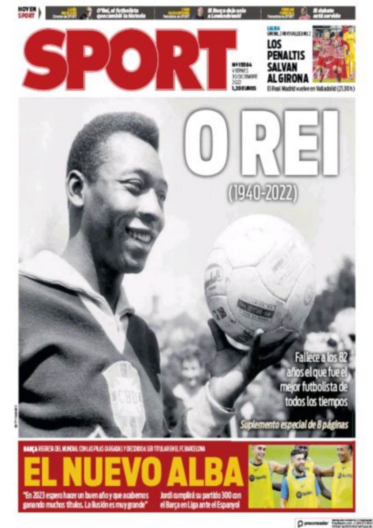 Στα πρωτοσέλιδα όλων των αθλητικών και όχι μόνο εφημερίδων βρέθηκε η είδηση του θανάτου του Πελέ.