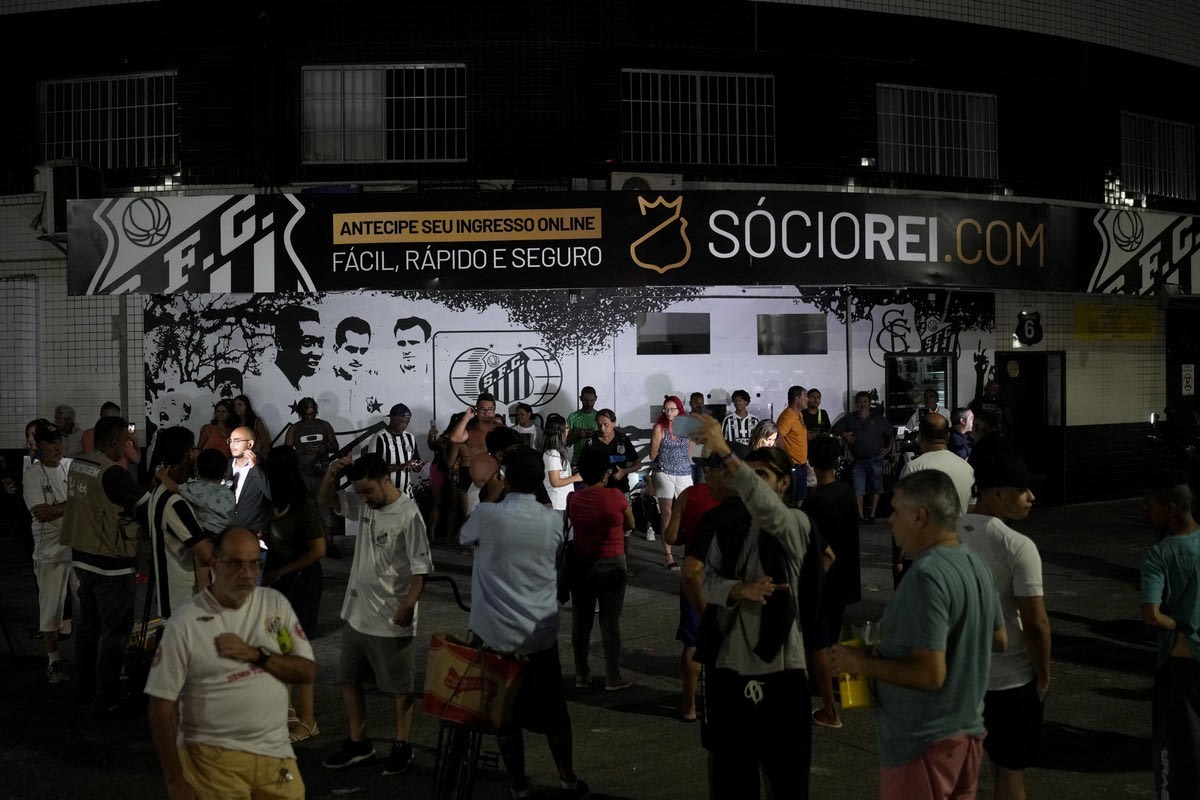 Φίλαθλοι του ποδοσφαίρου βρέθηκαν έξω από το γήπεδο της Σάντος για να πουν το δικό τους αντίο στον Πελέ.