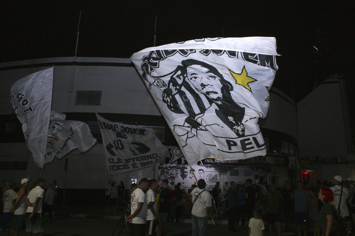 Ένα από τα σημεία που συγκεντρώθηκε κόσμος ήταν έξω από το γήπεδο της Σάντος. Φίλαθλοι άφησαν ένα λουλούδι και κρατούσαν σημαίες και εμφανίσεις του θρυλικού Βραζιλιάνου.