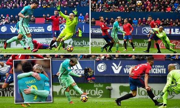 Το τρίτο γκολ της Μπαρτσελόνα, ήρθε στο δεύτερο λεπτό των καθυστερήσεων και πάλι από τον Λιονέλ Μέσι. Ο Αργεντινός βρήκε ανοργάνωτη την άμυνα της Οσασούνα, “ζάλισε” τους αμυντικούς και πέτυχε ένα πανέμορφο γκολ.