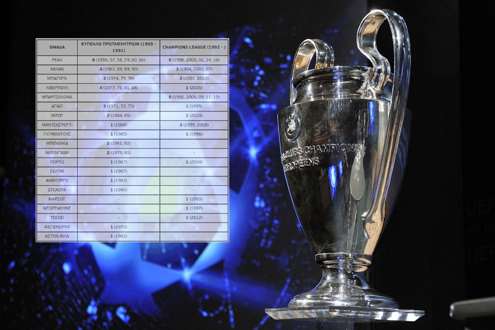 ΠΙΝΑΚΑΣ: Οι Πρωταθλητές Ευρώπης προ και μετά Champions League
