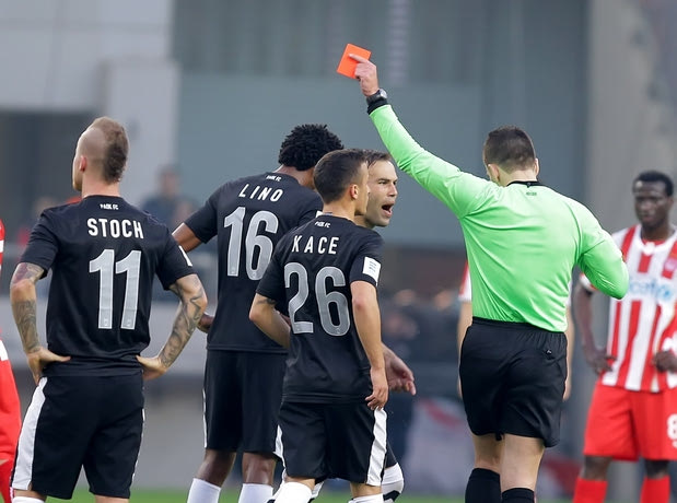 “Στη φάση της αποβολής ο Βαλντέζ σπρώχνει τον Κλάους και δεν δέχεται καν κάρτα, ο Φουστέρ “γκρεμίζει” τον Κλάους και δέχεται κίτρινη και ο Στοχ “γκρεμίζει” τον Βαλντέζ και δέχεται απευθείας κόκκινη. Σημειώνεται ότι ο Βαλντέζ είχε ήδη κίτρινη. ΙΣΟΝΟΜΙΑ”.