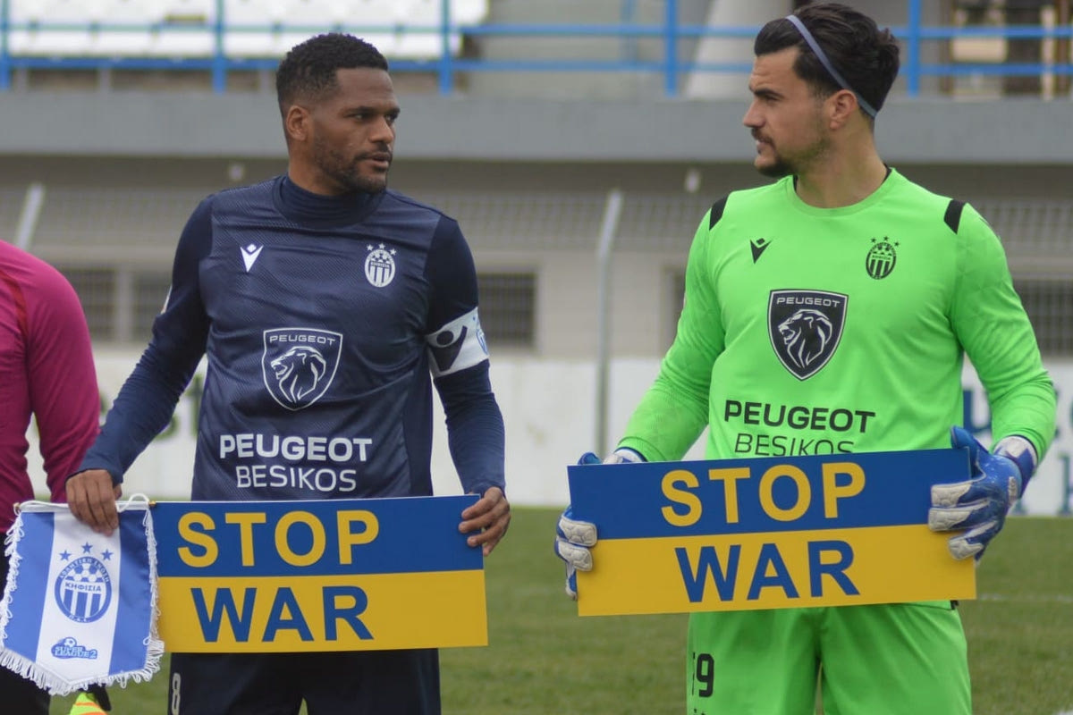 Το αντιπολεμικό καρτελάκι που κρατούσαν οι παίκτες της Κηφισιάς