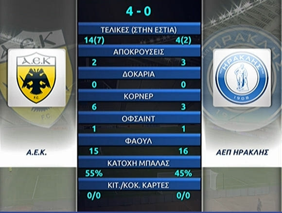 “Πολυβόλο” στο δεύτερο η ΑΕΚ, 4-0 τον Ηρακλή