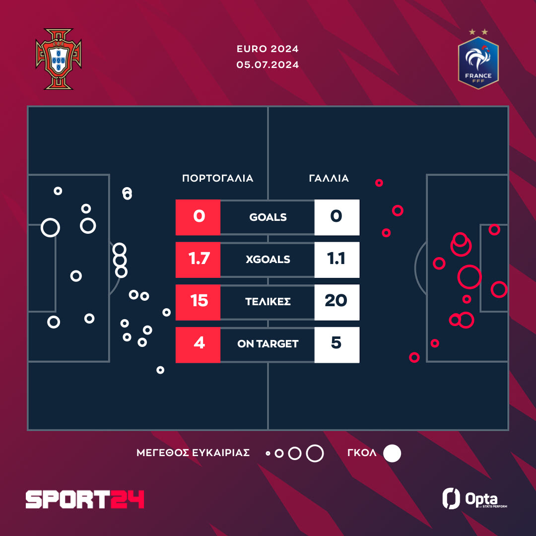 Από εκεί και πέρα ότι σουτ επιχείρησαν οι Πορτογάλοι ή οι Γάλλοι με τους Εμπαπέ, Νούνο Μέντες έφυγαν πάνω από την εστία των δύο γκολκίπερ.