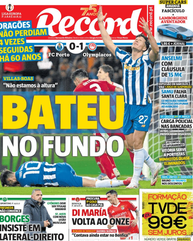Στο ίδιο μήκος κλίματος κινείται και η “A Bola”, που σημειώνει ότι ο πρόεδρος των Δράκων, Αντρέ Βίλας-Μπόας, μετά το τέλος του αγώνα ζήτησε συγγνώμη από τους φιλάθλους της ομάδας, ενώ στέκεται και στο ιστορικό χαμηλό της Πόρτο, η οποία για πρώτη φορά μετά το μακρινό 1964 έχασε για τέταρτο διαδοχικό παιχνίδι.