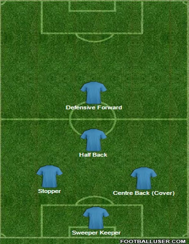 Η συγκεκριμένη διάταξη είναι αμυντικογενής και ενδείκνυται για την αντιμετώπιση ποιοτικότερων αντιπάλων. Ρόλος “κλειδί” αυτός του παίκτη μπροστά από τους δύο αμυντικούς.