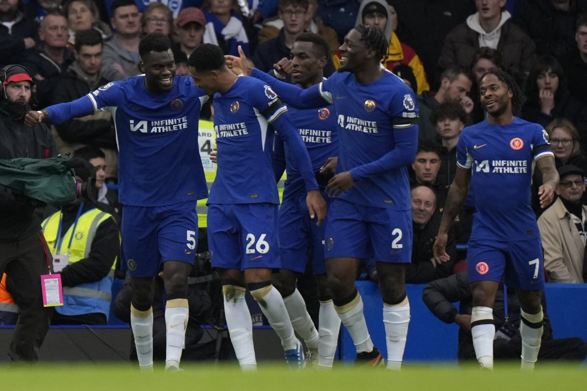 Οι παίκτες της Τσέλσι πανηγυρίζουν γκολ κόντρα στην Μπράιτον στο Στάμφορντ Μπριτζ | 3 Δεκεμβρίου 2023 @2023 Alastair Grant/AP IMAGES