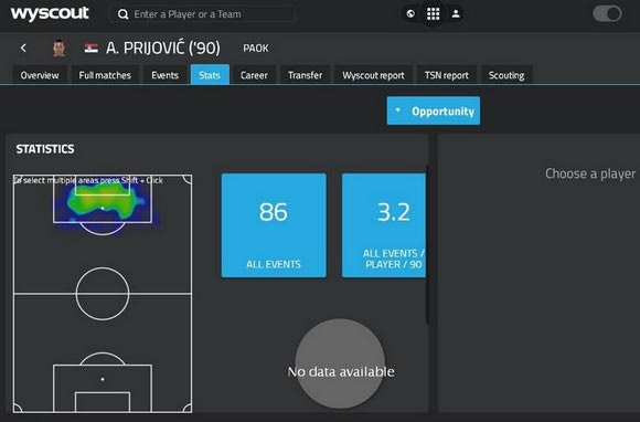 Ο Πρίγιοβιτς, από την πλευρά του, κινείται περισσότερο μέσα στην περιοχή, μπορεί να περάσει και τελικές πάσες, αλλά δεν συνηθίζει να γυρίζει πιο πίσω για να κάνει παιχνίδι. Η διαφορά στο αγωνιστικό στυλ των δύο παικτών αποτυπώνεται και στις κάρτες της γνωστής πλατφόρμας wyscout που αναλύουν τους χώρους στους οποίους κάνουν τις τελικές τους προσπάθειες.