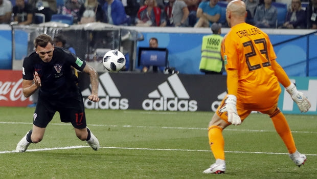 Γήπεδο: “Νίζνι Νόγκοροντ” (Νίζνι Νόβγκοροντ) Διαιτητής: Ρασβάν Ιρμάτοβ (Ουζμπεκιστάν) Βοηθοί: Αμπντουλκαμιντούλο Ρασούλοβ (Ουζμπεκιστάν), Τζακονγκίρ Σαΐντοβ (Ουζμπεκιστάν) Τέταρτος διαιτητής: Νόρμπερτ Αουάτα (Ταϊτή) ΑΡΓΕΝΤΙΝΗ: Καμπαγέρο, Μερκάντο, Οταμέντι, Ταγλιαφίκο, Σάλβιο (56′ Παβόν), Μαστσεράνο, Πέρες (68′ Ντιμπάλα), Ακούνια, Μέσι, Μέσα, Αγκουέρο (54′ Ιγκουαΐν) ΚΡΟΑΤΙΑ: Σούμπασιτς, Βρσάλκο, Λόβρεν, Βίντα, Στρίνιτς, Ράκιτιτς, Μόντριτς, Μπρόζοβιτς, Ρέμπιτς (57′ Κράμαριτς), Μάντζουκιτς (90+2′ Τσόρλουκα), Πέρισιτς (82′ Κόβατσιτς) Γκολ: 53′ Ρέμπιτς, 81′ Μόντριτς, 90+1′ Ράκιτιτς Κίτρινη κάρτα: 51′ Μερκάντο, 85′ Οταμέντι, 87′ Ακούνια / 39′ Ρέμπιτς, 58′ Μάντζουκιτς, 67′ Βρσάλκο, 90+4′ Μπρόζοβιτς Κόκκινη κάρτα: – |