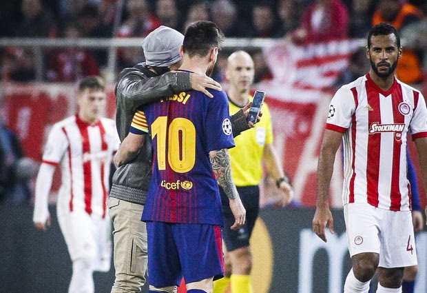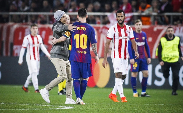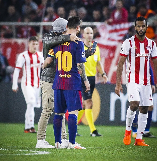 Στο 21ο λεπτό της αναμέτρησης, ένας νεαρός φίλος των “ερυθρολεύκων”, που είχε πηδήξει νωρίτερα από την κερκίδα, έσπευσε να αγκαλιάσει τον Αργεντινό σταρ, ο οποίος εκείνη την ώρα πήγε να εκτελέσει κόρνερ.